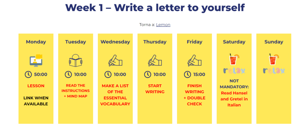 Queste lezioni speciali sono posizionate all’inizio e alla fine del corso. All’inizio, ti chiederò di scrivere una lettera a te stessa, per mettere nero su bianco i tuoi obiettivi e la tua motivazione. Alla fine del percorso, scriverai una nuova lettera, che ti permetterĂ di riflettere sui progressi fatti e di vedere quanto sei cresciuta.